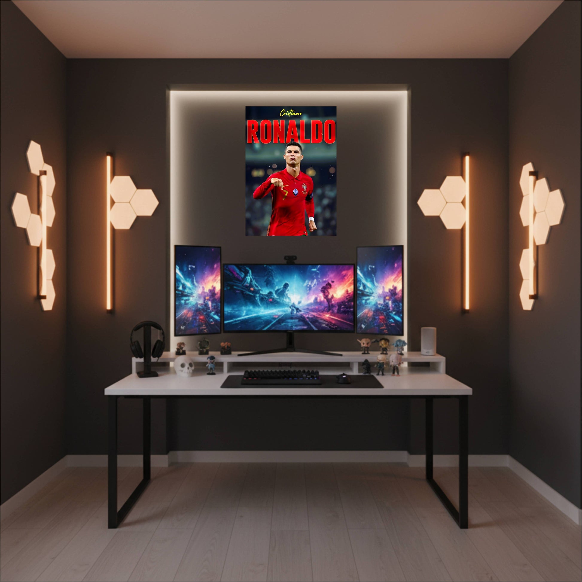 Celebrate the legendary career of one of football's greatest icons with this striking Cristiano Ronaldo poster. Perfect for fans, athletes, and anyone inspired by excellence, this high-quality print captures the passion and determination that define CR7's legacy. Whether displayed in a bedroom, office, or sports room, it serves as a daily reminder to pursue greatness. Make a bold statement with a poster that honors athletic achievement and inspires peak performance.
