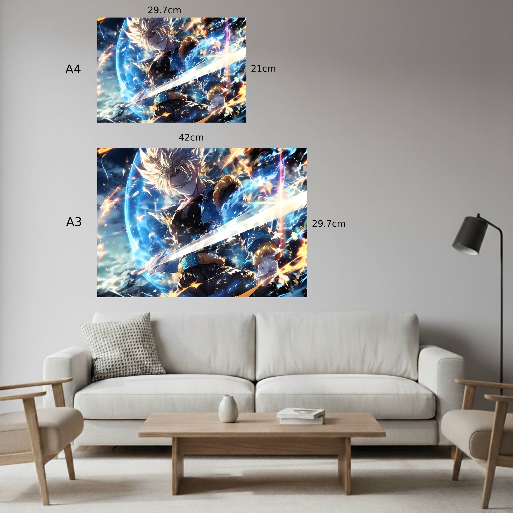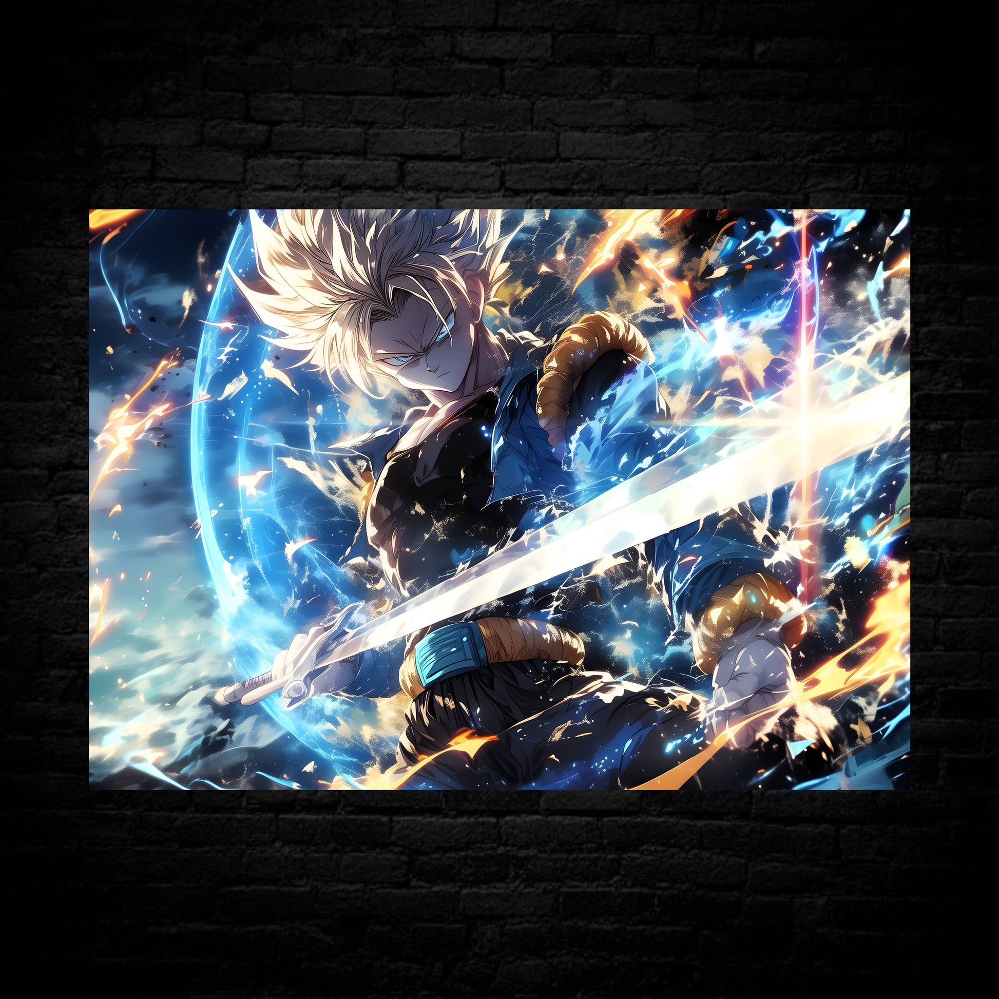 Trunks: Blade of the Future Poster Step into the world of Dragon Ball Z with this striking Trunks poster, capturing the legendary Saiyan warrior in his most iconic moment. Perfect for anime enthusiasts and collectors, this high-quality print showcases Trunks wielding his signature sword with intense determination and power. The vibrant artwork brings the character's fierce energy to life, making it an eye-catching addition to any room. Whether you're decorating a bedroom, gaming space, or office, this poster celebrates one of anime's most beloved characters. Transform your walls into a tribute to the Future Trunks saga and let your passion for Dragon Ball Z shine through.